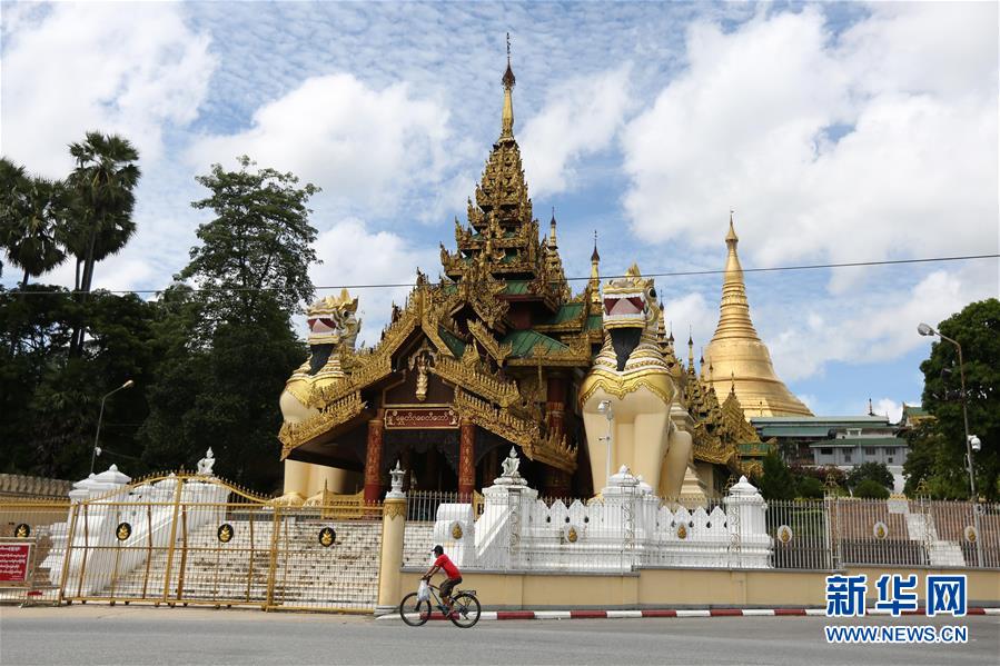 9月26日,一名佩戴口罩的男子骑车经过缅甸仰光大金塔。 缅甸卫生和体育部26日发布的新冠疫情数据显示,该国新增新冠确诊病例880例,累计确诊9991例。 新华社发(吴昂摄)