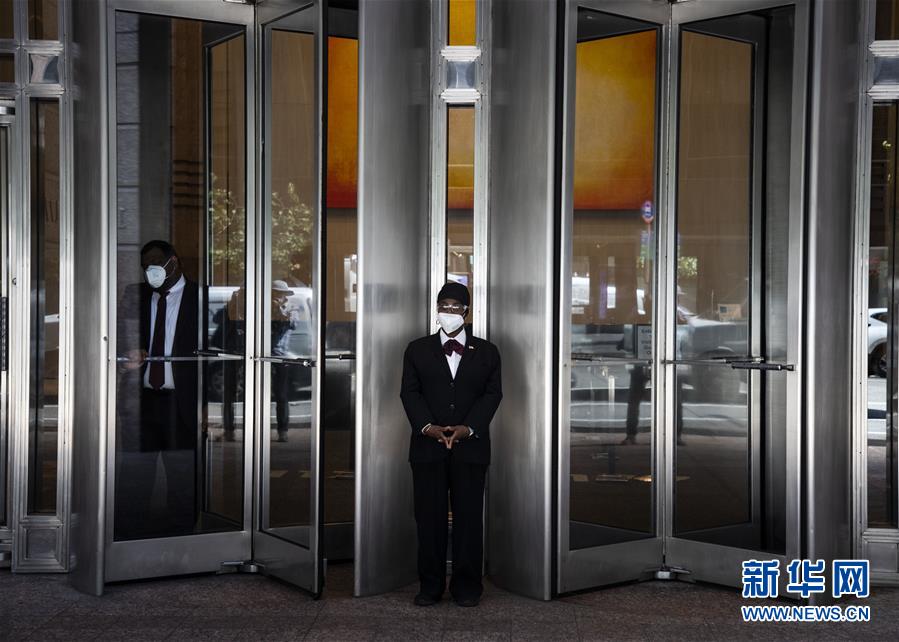 9月28日,在美国纽约,一名门卫在写字楼外值班。 美国约翰斯·霍普金斯大学28日发布的新冠疫情最新统计数据显示,全球累计死亡病例超过100万例。 新华社记者 王迎 摄