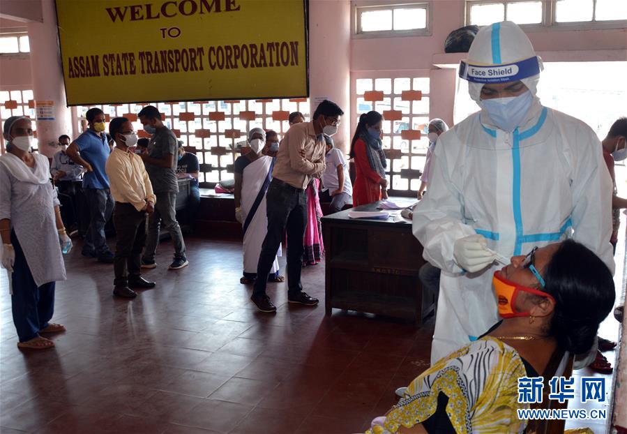 9月28日,在印度高哈蒂,医护人员进行新冠病毒检测采样。 美国约翰斯·霍普金斯大学28日发布的新冠疫情最新统计数据显示,全球累计死亡病例超过100万例。 新华社发