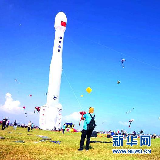 同比例长征三号火箭风筝,表达英勇无畏民族精神。新华网发 常武摄