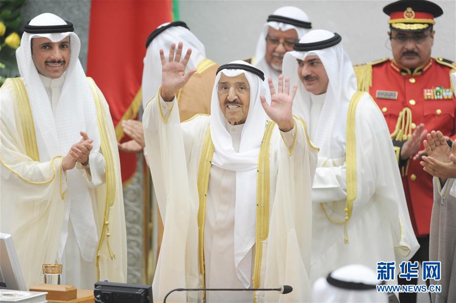 这是2019年10月29日科威特埃米尔萨巴赫(中)在科威特首都科威特城出席议会会议的资料照片。 科威特埃米尔宫9月29日宣布,科威特埃米尔萨巴赫去世,享年91岁。 新华社发