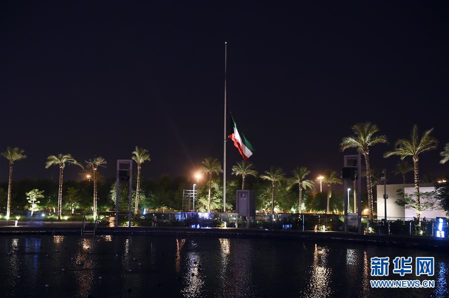 9月29日,科威特首都科威特城的一处建筑降半旗志哀。 科威特埃米尔宫29日宣布,科威特埃米尔萨巴赫去世,享年91岁。 新华社发