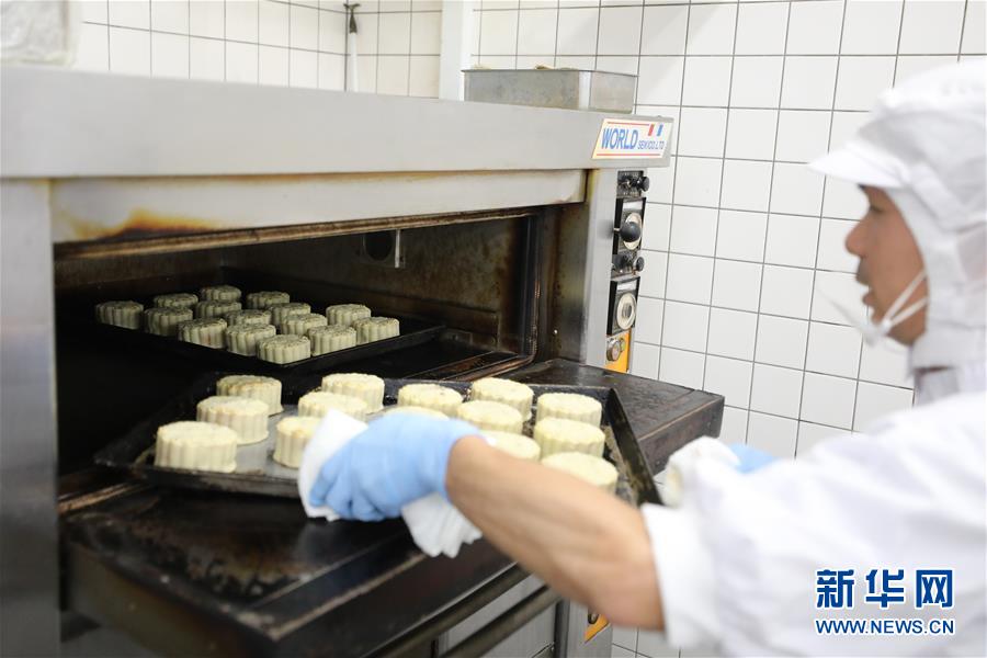 9月30日,在日本横滨,菜香食品公司的工作人员在制作月饼。 中秋节到来之际,日本横滨的菜香食品公司制作了许多蛋黄月饼,以蛋黄象征圆月,迎接中秋佳节。 新华社记者 杜潇逸 摄
