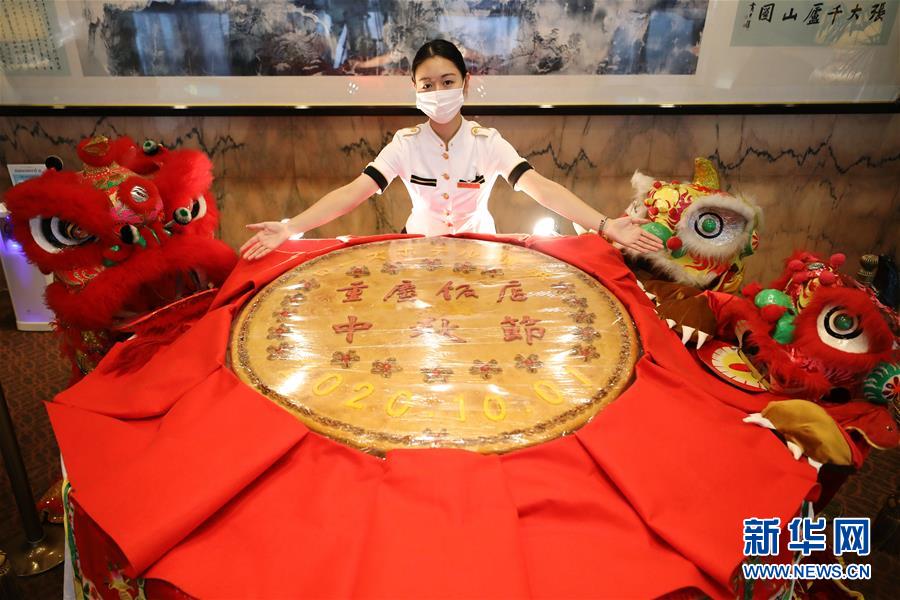 中秋节前夕,日本横滨的玫瑰酒店展出一个巨大的月饼。该月饼由同在横滨的中餐厅重庆饭店制作。据悉,重庆饭店每年都会制作巨大的月饼,并在中秋节当天请游客品尝。今年受疫情影响,不设品尝环节。