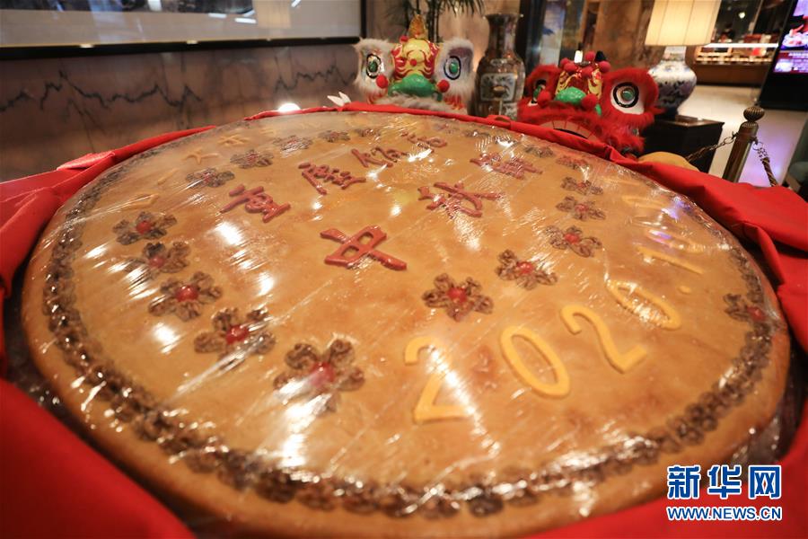 这是9月30日在日本横滨玫瑰酒店拍摄的巨大月饼。新华社记者杜潇逸摄