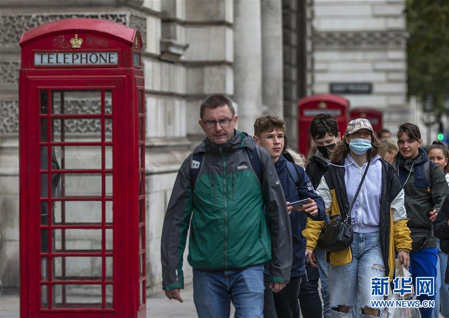 9月30日,人们走过英国伦敦白厅附近的红色电话亭。 英国首相约翰逊9月30日在伦敦说,如果证据显示该国新冠疫情发展到了需要采取进一步措施的时候,英国政府会“毫不犹豫”这么做。英国政府30日公布的新冠疫情数据显示,该国当天新增确诊病例7108例,累计确诊达453264例。 新华社记者 韩岩 摄