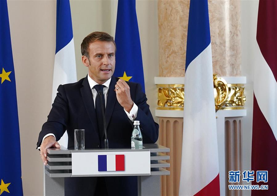 9月30日,在拉脱维亚里加,法国总统马克龙在记者会上讲话。 正在拉脱维亚访问的法国总统马克龙当天在里加与拉脱维亚总理卡林斯举行会谈。马克龙表示,俄罗斯是欧洲大国,欧洲需要恢复与俄罗斯的战略对话。 新华社发(亚尼斯摄)