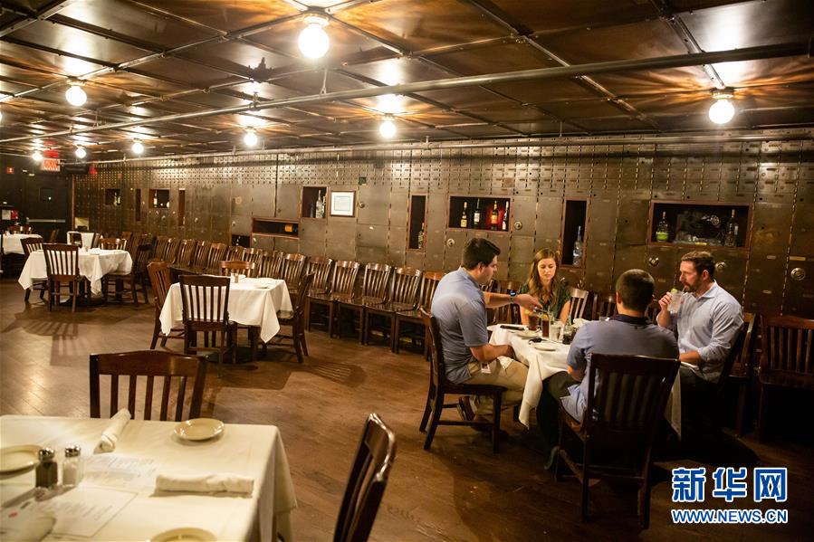 9月30日,人们在美国纽约的一家餐厅内就餐。 当天,美国纽约市允许餐厅重新开放室内就餐。开放室内就餐的餐厅只允许25%的顾客容量,且需要遵守相关防疫规定。 新华社发(郭克摄)