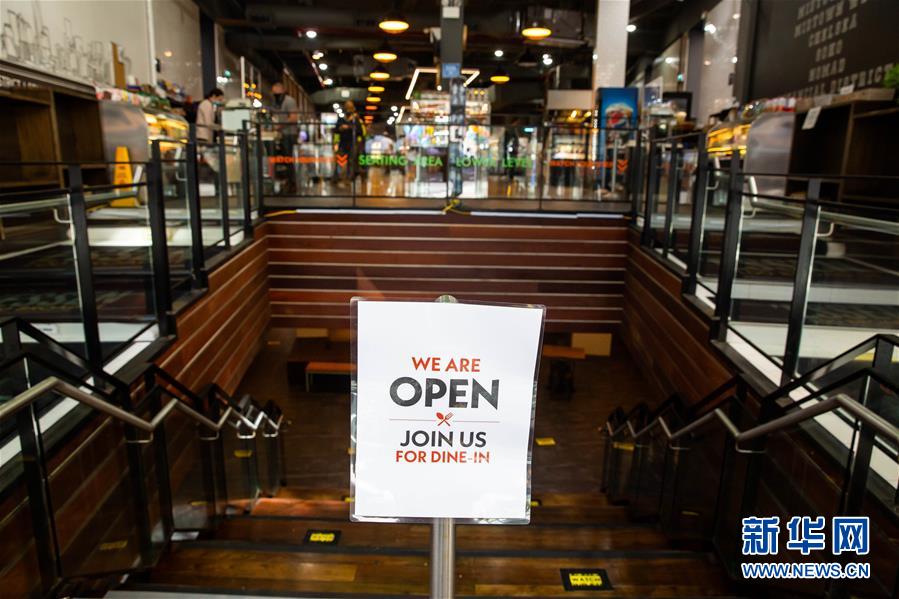 9月30日,美国纽约一家餐厅的入口处摆放着室内就餐开放的标识。 当天,美国纽约市允许餐厅重新开放室内就餐。开放室内就餐的餐厅只允许25%的顾客容量,且需要遵守相关防疫规定。 新华社发(郭克摄)