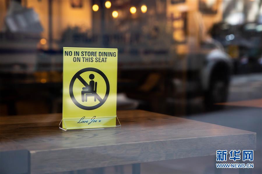 9月30日,美国纽约一家餐厅的桌子上摆放着的标识。 当天,美国纽约市允许餐厅重新开放室内就餐。开放室内就餐的餐厅只允许25%的顾客容量,且需要遵守相关防疫规定。 新华社发(郭克摄)