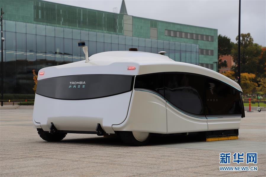 9月29日,全自动低碳扫路车在芬兰赫尔辛基举行的发布会上进行试运行。新华社记者 朱昊晨 摄