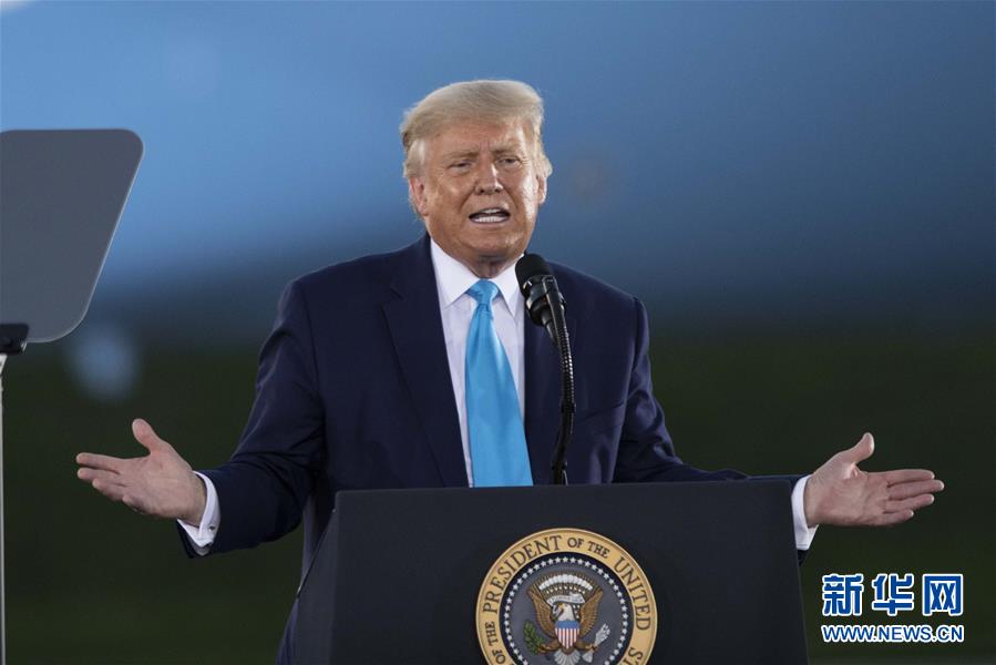 美国总统特朗普10月2日凌晨在社交媒体上说,他和夫人梅拉尼娅新冠病毒检测结果均呈阳性,将马上进入隔离和康复程序。 这是9月3日美国总统特朗普在美国宾夕法尼亚州拉特罗布参加竞选集会的资料照片。 新华社记者 刘杰 摄