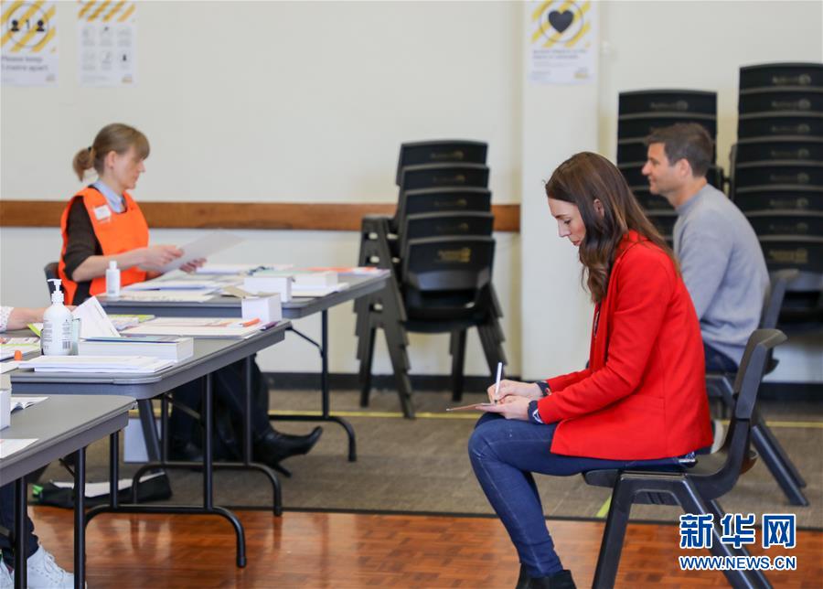10月3日,在新西兰最大城市奥克兰,现任总理杰辛达·阿德恩(前)作为工党领袖在一处投票点进行投票。 新西兰2020年大选提前投票当地时间3日开始。受新冠疫情影响,原定于9月19日举行的新西兰2020年大选推迟至10月17日举行。 新华社发