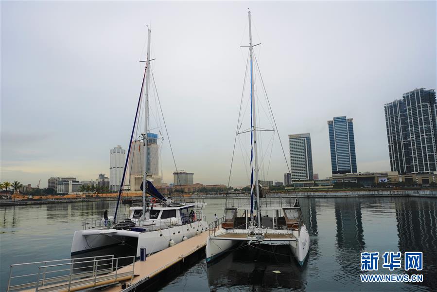 9月25日,在斯里兰卡科伦坡港口城,两艘游艇停泊在新建的游艇码头。 新华社记者 唐璐 摄