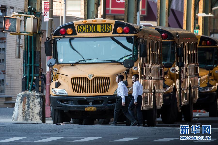 10月4日,孩子们走在美国纽约布鲁克林伯罗公园街头。该区域新冠检测阳性率连续7天以上超过3%。新华社发(郭克摄)