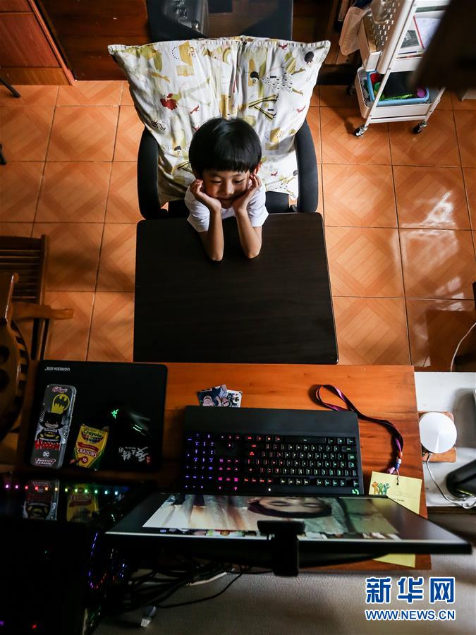 10月5日,在菲律宾马尼拉,5岁的格雷森·卢卡斯开学第一天上网课。 为应对新冠疫情,菲律宾开学后通过线上平台网络教学。 新华社发(乌马利摄)