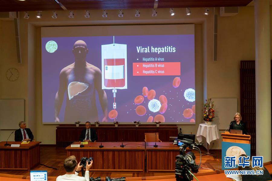 10月5日,在瑞典斯德哥尔摩的卡罗琳医学院,专家解读今年获奖成就。 瑞典卡罗琳医学院5日宣布,将2020年诺贝尔生理学或医学奖授予美国科学家哈维·阿尔特、查尔斯·赖斯以及英国科学家迈克尔·霍顿,以表彰他们在发现丙型肝炎病毒方面所做出的贡献。 新华社发(魏学超摄)