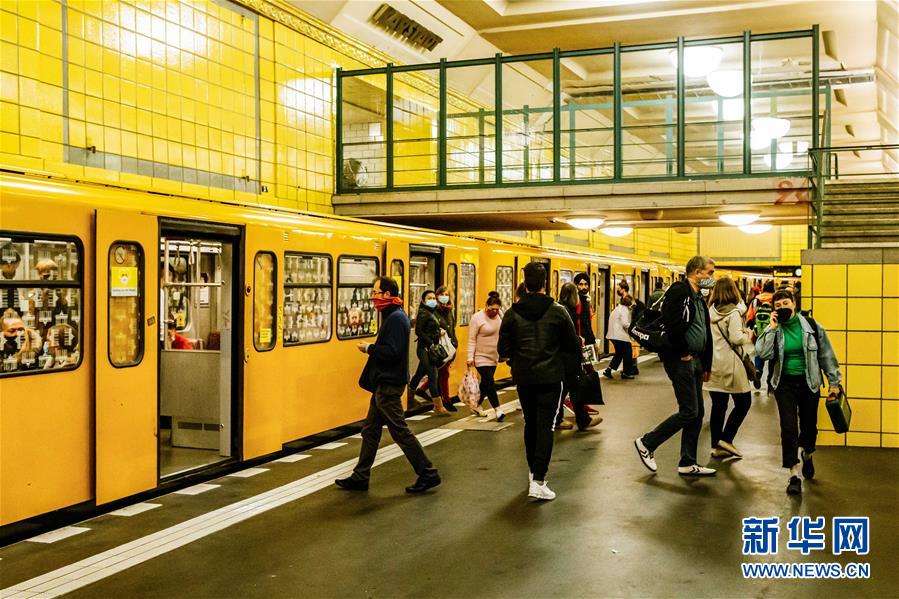 10月5日,在德国首都柏林,乘客在地铁站内上下车。 德国疾控机构罗伯特·科赫研究所5日公布的新冠疫情数据显示,截至当天零时,德国累计新冠确诊病例300619例,其中尚未治愈27385例。首都柏林主城区3个区域疫情超过“警戒线”,将面临更严格的防疫措施。 新华社发(张平摄)