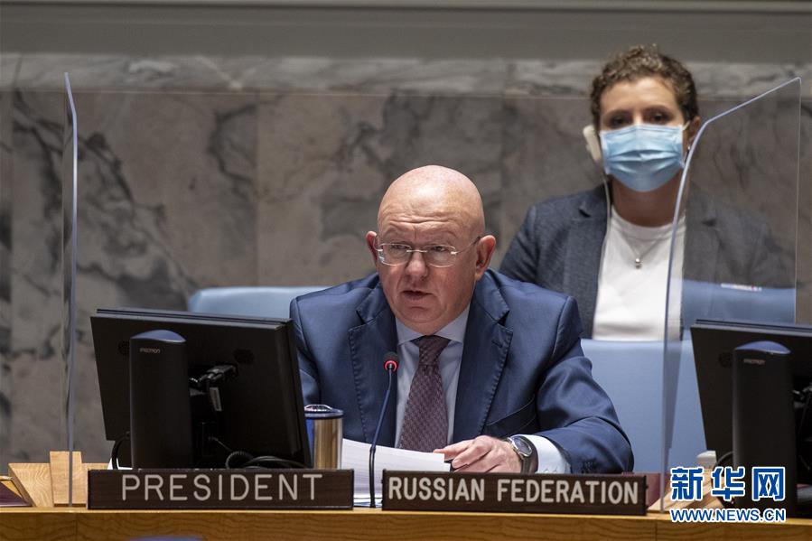 10月8日,在位于纽约的联合国总部,联合国安理会10月轮值主席、俄罗斯常驻联合国代表瓦西里·涅边贾(前)主持安理会马里局势公开会。 联合国安理会8日在安理会厅举行马里局势公开会。这是安理会厅因新冠疫情关闭近7个月后首次重新启用。 新华社发(联合国供图)