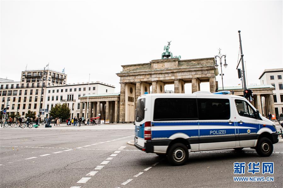 10月8日,在德国首都柏林,一辆警车从勃兰登堡门前驶过。 德国疾控机构罗伯特·科赫研究所8日公布的新冠疫情数据显示,截至当天零时,德国较前一日新增新冠确诊病例4058例,这一数据为4月初以来的最高值。 新华社发(张平摄)