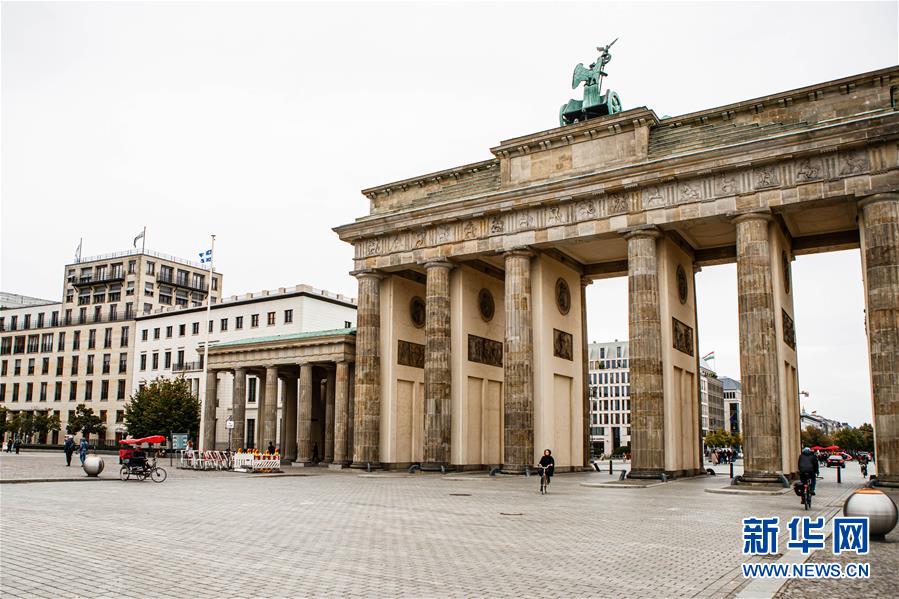 10月8日,在德国首都柏林,人们骑车穿过勃兰登堡门。 德国疾控机构罗伯特·科赫研究所8日公布的新冠疫情数据显示,截至当天零时,德国较前一日新增新冠确诊病例4058例,这一数据为4月初以来的最高值。 新华社发(张平摄)