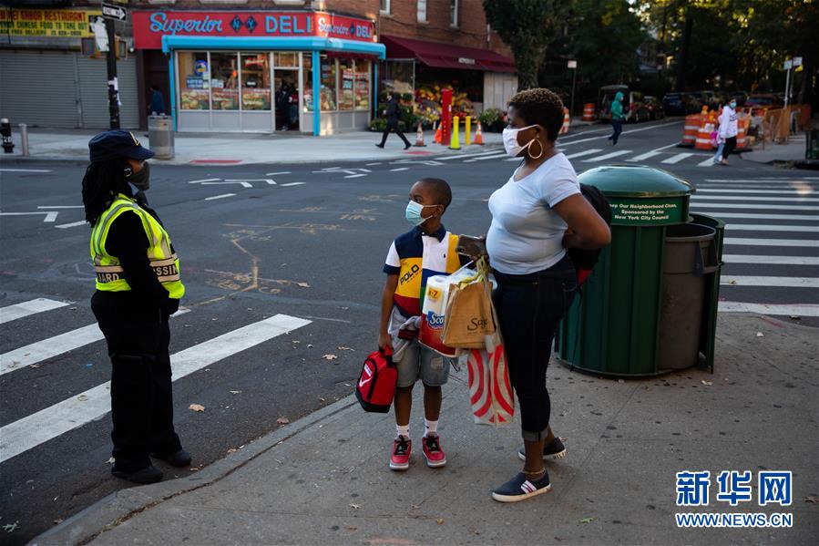 10月8日,在美国纽约布鲁克林区,一名准备到校上课的学生被通知学校已暂时关闭。 纽约州本周逐步执行更加严格的防疫措施,包括在疫情反弹严重的地区重新关闭“非必要”行业和学校、限制大规模聚集等。 新华社发(郭克摄)