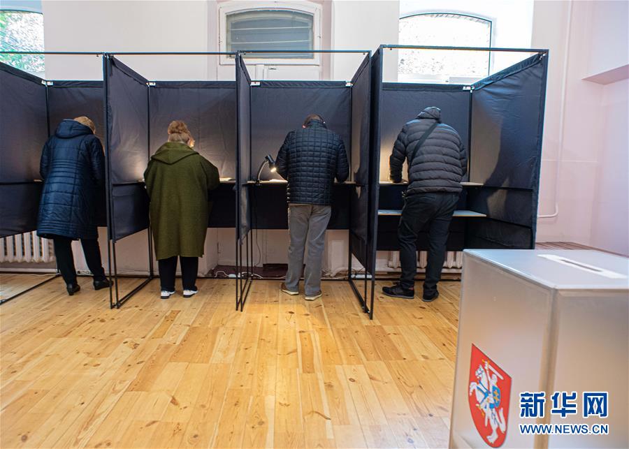 10月11日,选民在立陶宛维尔纽斯一处投票站填写选票。 立陶宛11日举行新一届议会选举首轮投票,将选出141名议员。 新华社发(阿尔弗雷达斯·普里亚迪斯 摄)