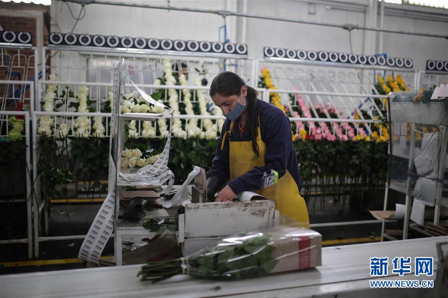 10月7日,哥伦比亚瓦尤花田的工人在对包装好的鲜花贴码。 瓦尤花田位于哥伦比亚首都波哥大以北约30公里的小城瓜斯卡,这座占地17公顷的农场一年四季种植不同品种的玫瑰,年产量达1700万枝。今年国庆中秋假期,又一批来自瓦尤花田的鲜花不远万里进入中国市场,在消费者手中留香。 新华社发(约翰·帕斯摄)