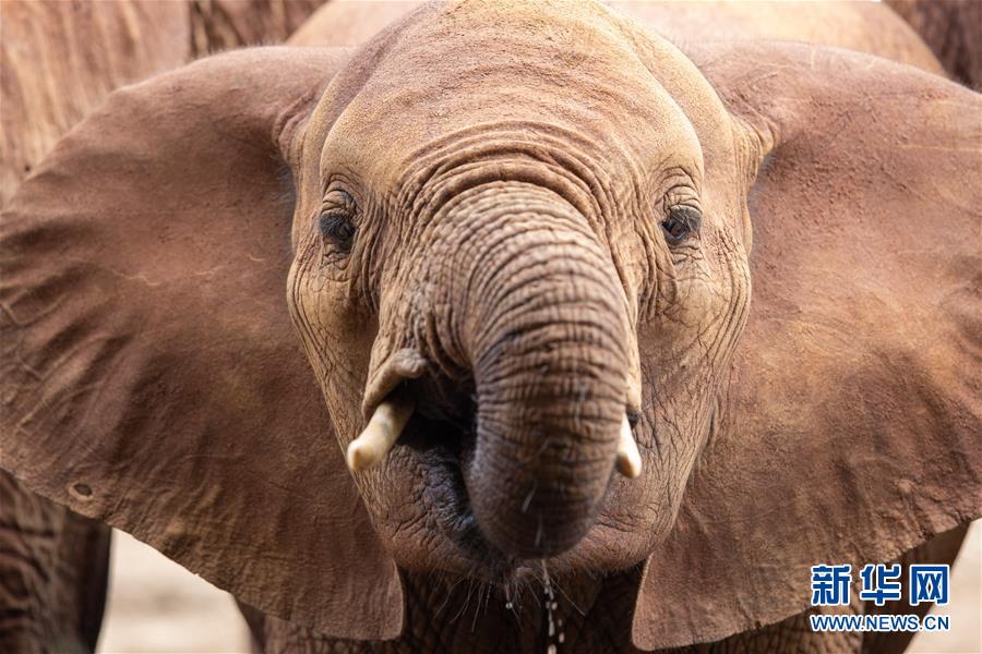 这是2018年11月29日拍摄的肯尼亚察沃国家公园里的正在喝水的大象。新华社记者 张宇 摄