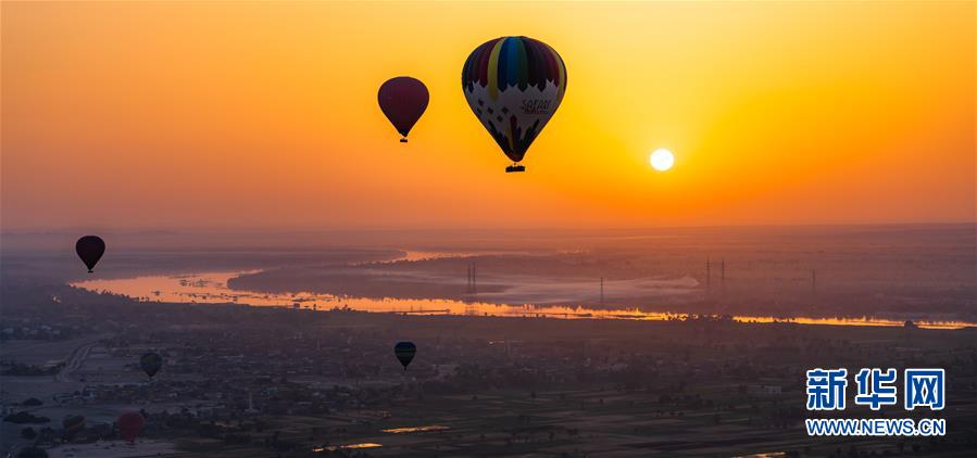这是2019年5月23日在埃及卢克索拍摄的尼罗河日出景象。新华社记者 谢晗 摄