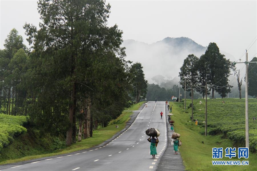 2017年10月19日,在卢旺达西南部的吉萨库拉,农民头顶茶叶走在茶园旁的道路上。新华社记者 吕天然 摄