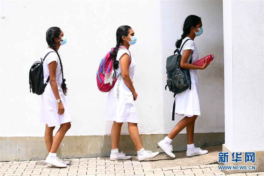 10月12日,在斯里兰卡科伦坡,参加考试的学生准备进入学校。 当天,斯里兰卡高级程度考试在严格的防疫措施下开始举行。 新华社发(阿吉特·佩雷拉摄)
