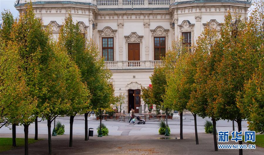 10月12日,市民在奥地利维也纳美景宫花园内行走。 新华社记者 郭晨 摄