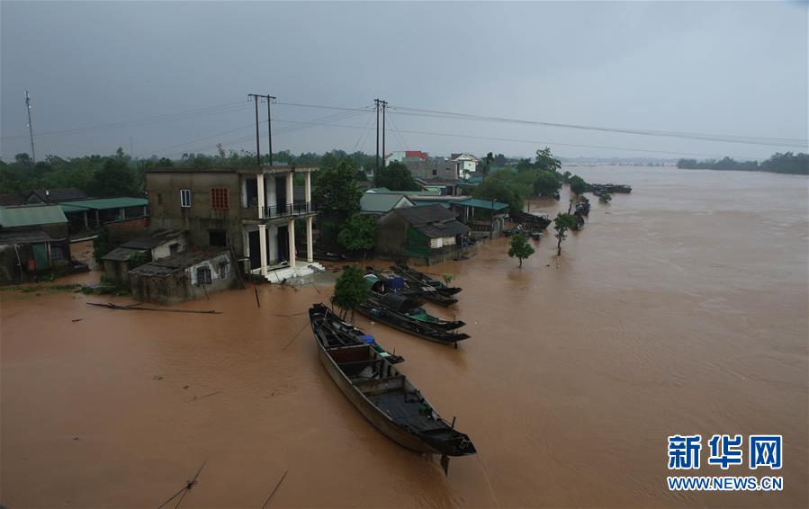 10月12日,在越南中部广治省,暴雨引发的洪水淹没村庄和道路。 据越南预防自然灾害中央指导委员会12日发布的消息,越南中部和西原地区近日连降暴雨,截至当地时间11日22时,相关灾害已造成至少18人死亡、14人失踪。 新华社/越通社