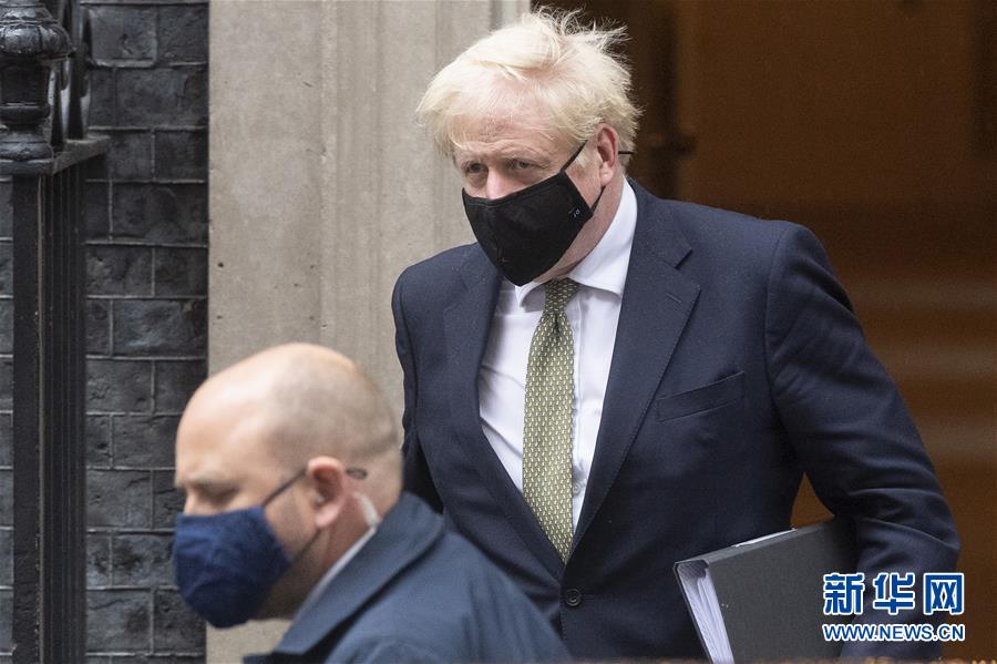 10月12日,在英国伦敦,英国首相鲍里斯·约翰逊(右)离开首相府前往议会。 英国首相约翰逊12日公布了一个适用于英格兰的三级新冠警戒系统,每一级别对应不同的疫情严重程度以及相应的应对措施,以进一步规范和简化英格兰各地落实疫情防控措施的程序。 新华社发(雷伊·唐摄)