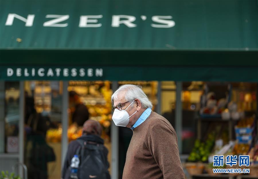 10月12日,一名男子戴着口罩从英国伦敦一家商店前走过。 英国首相约翰逊12日公布了一个适用于英格兰的三级新冠警戒系统,每一级别对应不同的疫情严重程度以及相应的应对措施,以进一步规范和简化英格兰各地落实疫情防控措施的程序。 新华社记者 韩岩 摄