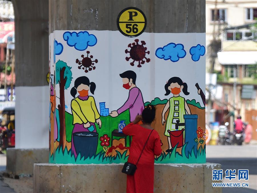 10月12日,在印度阿加尔塔拉街头,艺术院校的学生绘制抗击新冠疫情的宣传壁画。 印度卫生部11日公布的新冠疫情数据显示,该国累计确诊病例突破700万例。印度成为继美国之后,全球第二个累计确诊病例数超过700万例的国家。 新华社发
