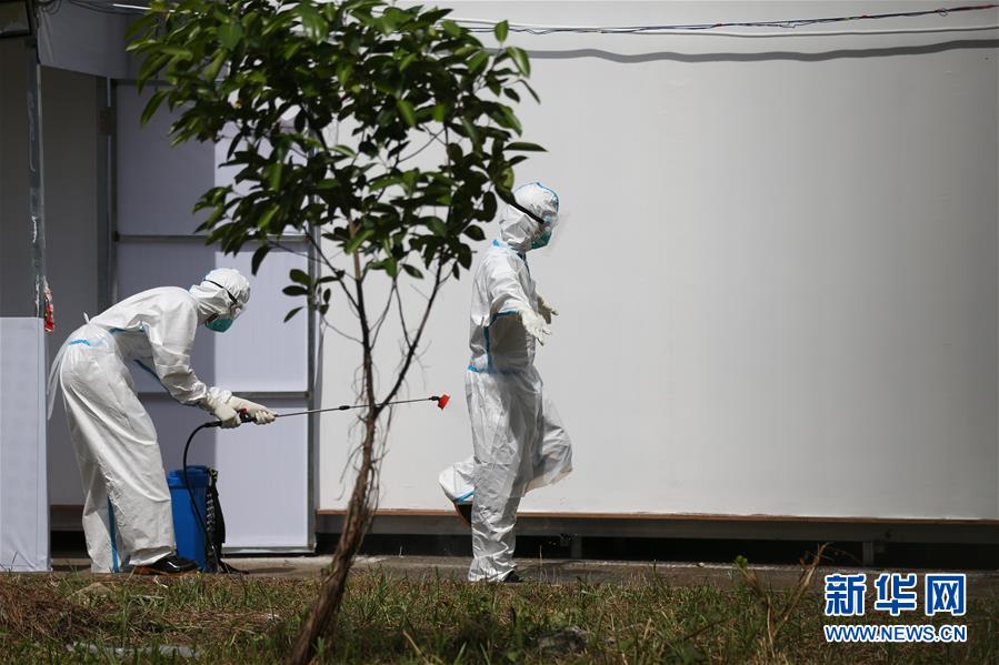 10月13日,一名身着防护服的志愿者在缅甸仰光的新冠检测和治疗中心为同事消毒。 缅甸卫生和体育部13日晚间发布的新冠疫情数据显示,过去24小时该国新增新冠确诊病例1123例,累计确诊30437例;新增死亡29例,累计死亡693例;累计治愈11769例。 新华社发(吴昂 摄)