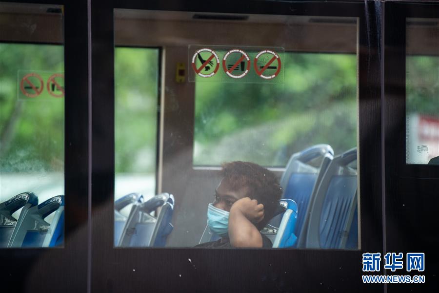10月14日,在马来西亚吉隆坡,一名乘客戴着口罩乘坐公交车。 新华社记者 朱炜 摄