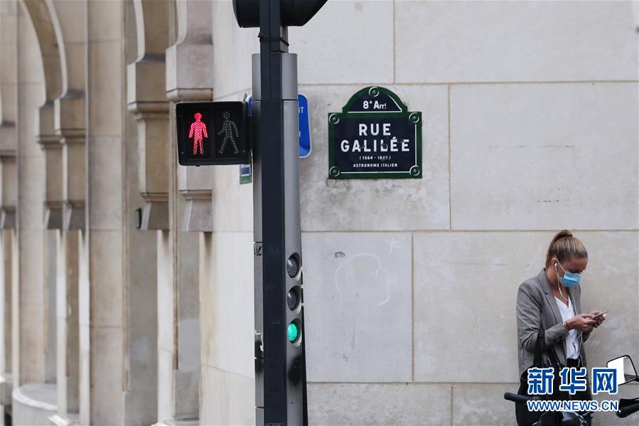 10月14日,一名戴口罩的女子在法国巴黎街头驻足。 法国总统马克龙14日晚宣布,将从17日起在法兰西岛大区(大巴黎地区)和其他8个大城市实施宵禁,以遏制新冠疫情。 新华社记者高静摄