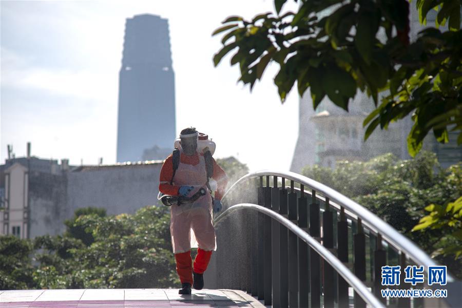 10月17日,工作人员在马来西亚吉隆坡独立广场附近喷洒消毒液。 马来西亚卫生部17日发布的新冠疫情数据显示,该国过去24小时新增确诊病例869例,创疫情以来单日新增病例数新高;累计确诊病例19627例;新增死亡病例4例,累计死亡180例;累计治愈12561例。 新华社发(张纹综摄)