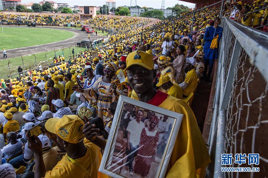 10月16日,几内亚总统孔戴的支持者在首都科纳克里参加竞选活动。新华社发(埃迪·皮特斯 摄)