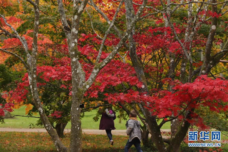 10月17日,孩子们在英国格洛斯特郡的韦斯顿伯特植物园内玩耍。 新华社发(蒂姆·爱尔兰摄)