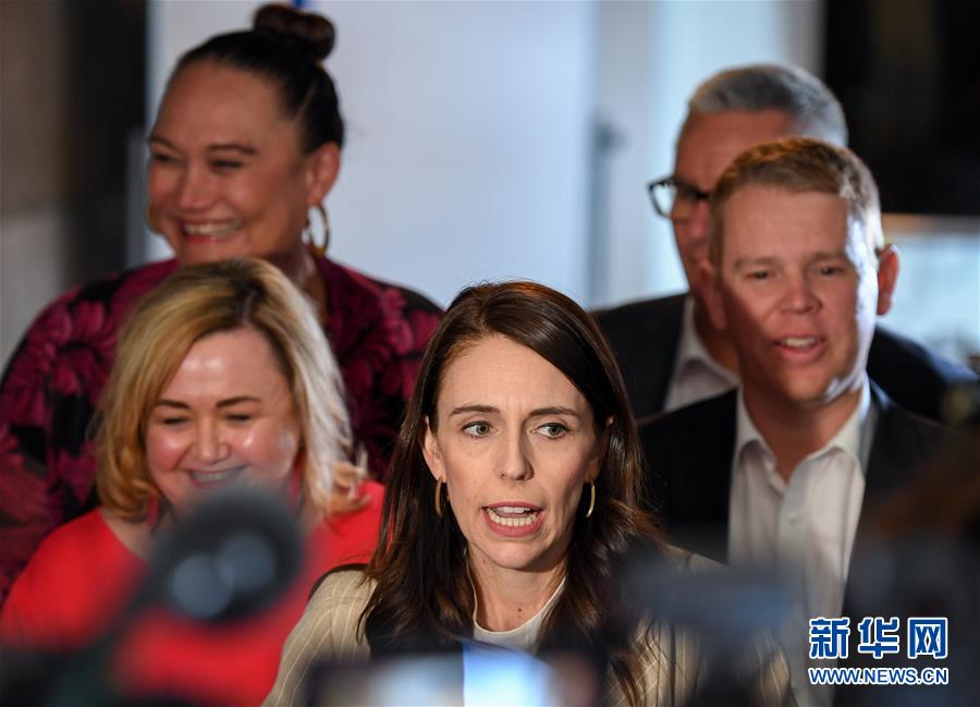 10月18日,在新西兰奥克兰,已经在大选中获胜的工党领袖杰辛达·阿德恩(前)召开新闻发布会。她表示,希望在三周内组建新一届政府。 尽管工党获得了议会120个席位中的64席,已足以独立组阁执政,但阿德恩暂时并未排除与绿党联合组阁的可能性。 新华社记者 郭磊 摄