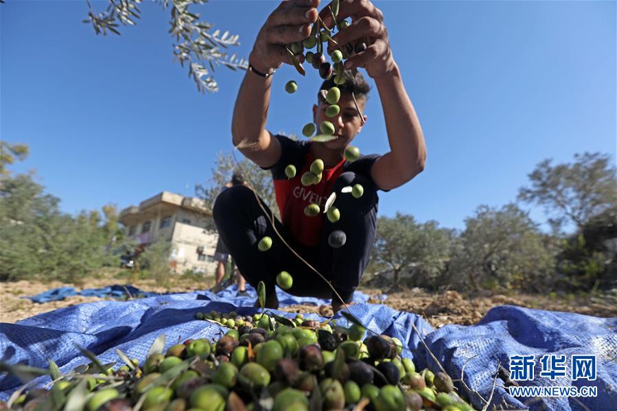 10月18日,一名男子在黎巴嫩南部收获橄榄。 黎巴嫩南部一些地区至今依然保留着用传统石碾压榨橄榄油的做法。 新华社发(比拉尔·贾维希摄)