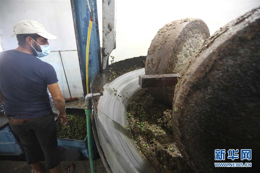 10月18日,一名工人在黎巴嫩南部一家榨油坊榨橄榄油。 黎巴嫩南部一些地区至今依然保留着用传统石碾压榨橄榄油的做法。 新华社发(比拉尔·贾维希摄)