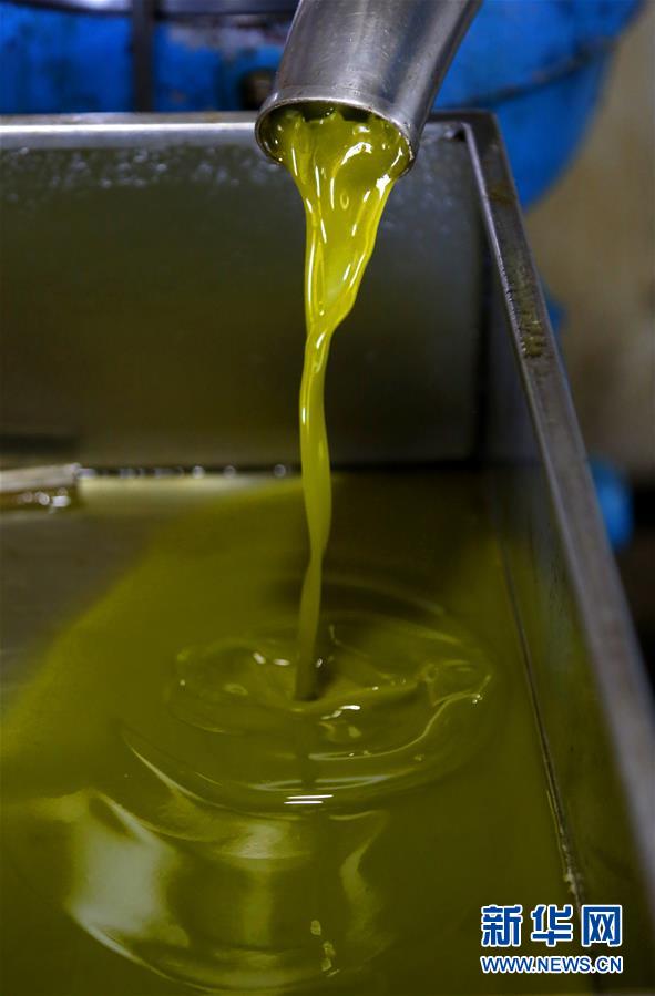 这是10月18日在黎巴嫩南部一家榨油坊拍摄的新榨的橄榄油。 黎巴嫩南部一些地区至今依然保留着用传统石碾压榨橄榄油的做法。 新华社发(比拉尔·贾维希摄)