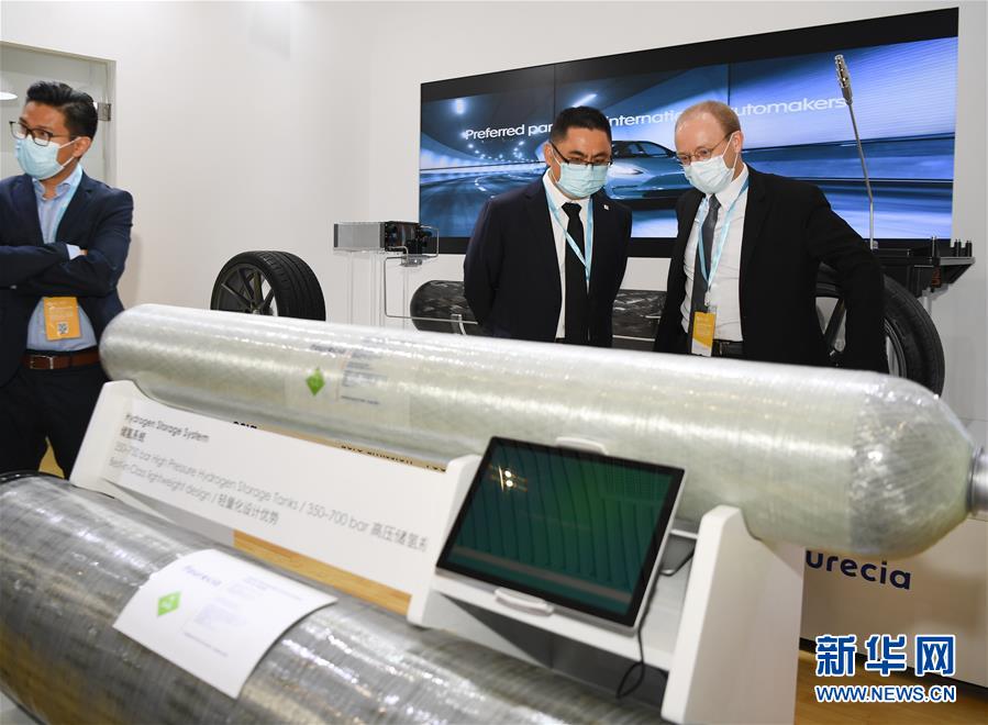 10月19日,与会者在观看大会展出的储氢系统。 当日,2020联合国开发计划署氢能产业大会在广东佛山开幕。大会以“发展绿色氢能、提振世界经济”为主题,将举办多场主题论坛,围绕燃料电池技术、氢能技术与应用、政策标准、氢安全等展开深入研讨,为国内外氢能及燃料电池产业搭建深度交流平台。 新华社记者 邓华 摄