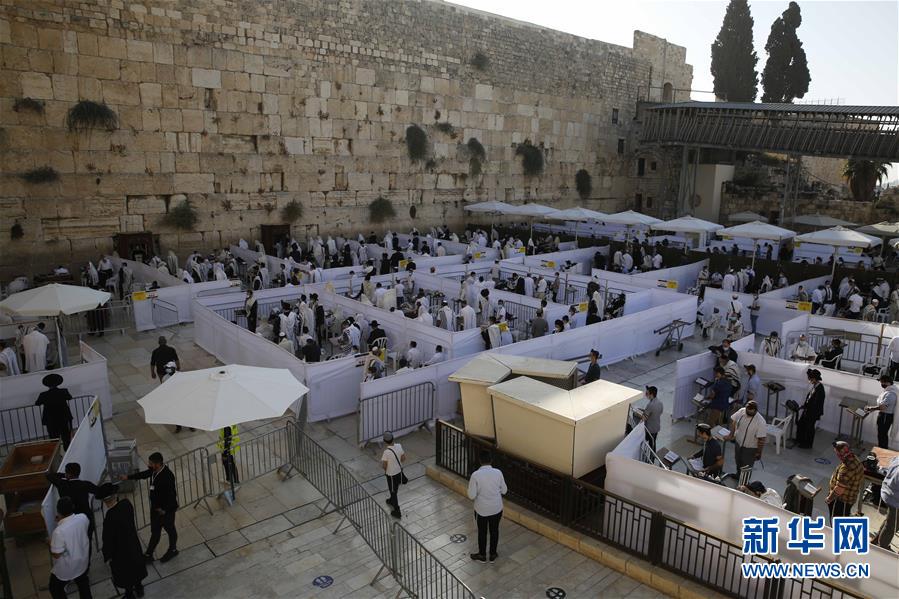 10月19日,人们在耶路撒冷老城重新开放的西墙广场祈祷。 为了遏制新冠病毒的传播,耶路撒冷从9月18日起再度实施“封城”。从10月18日起,耶路撒冷开始实施“封城”退出计划第一阶段的措施,放松相关的限制性措施。 新华社发(吉尔·科恩·马根摄)