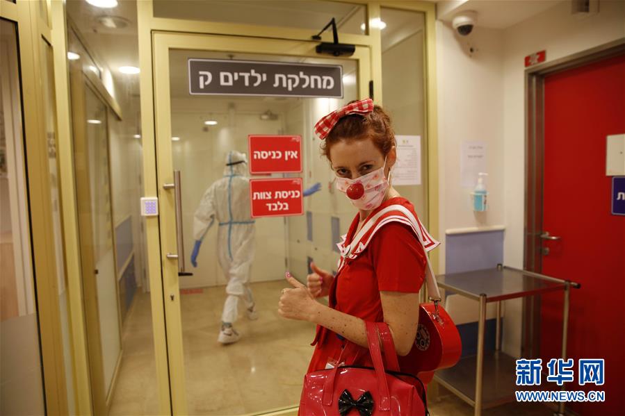 10月20日,在以色列中部城市拉马特甘一家医疗中心,一名“医疗小丑”准备工作。 新冠疫情期间,以色列医院里有这样一群特殊的人们,他们一身滑稽装扮,佩戴涂鸦口罩,动作夸张,希望以此帮助患者在欢笑中配合治疗,并暂时忘却孤独和痛苦。这些人被称为“医疗小丑”或是“梦想医生”,他们在严格的卫生防疫措施下坚持工作。 新华社发(吉尔·科恩·马根摄)